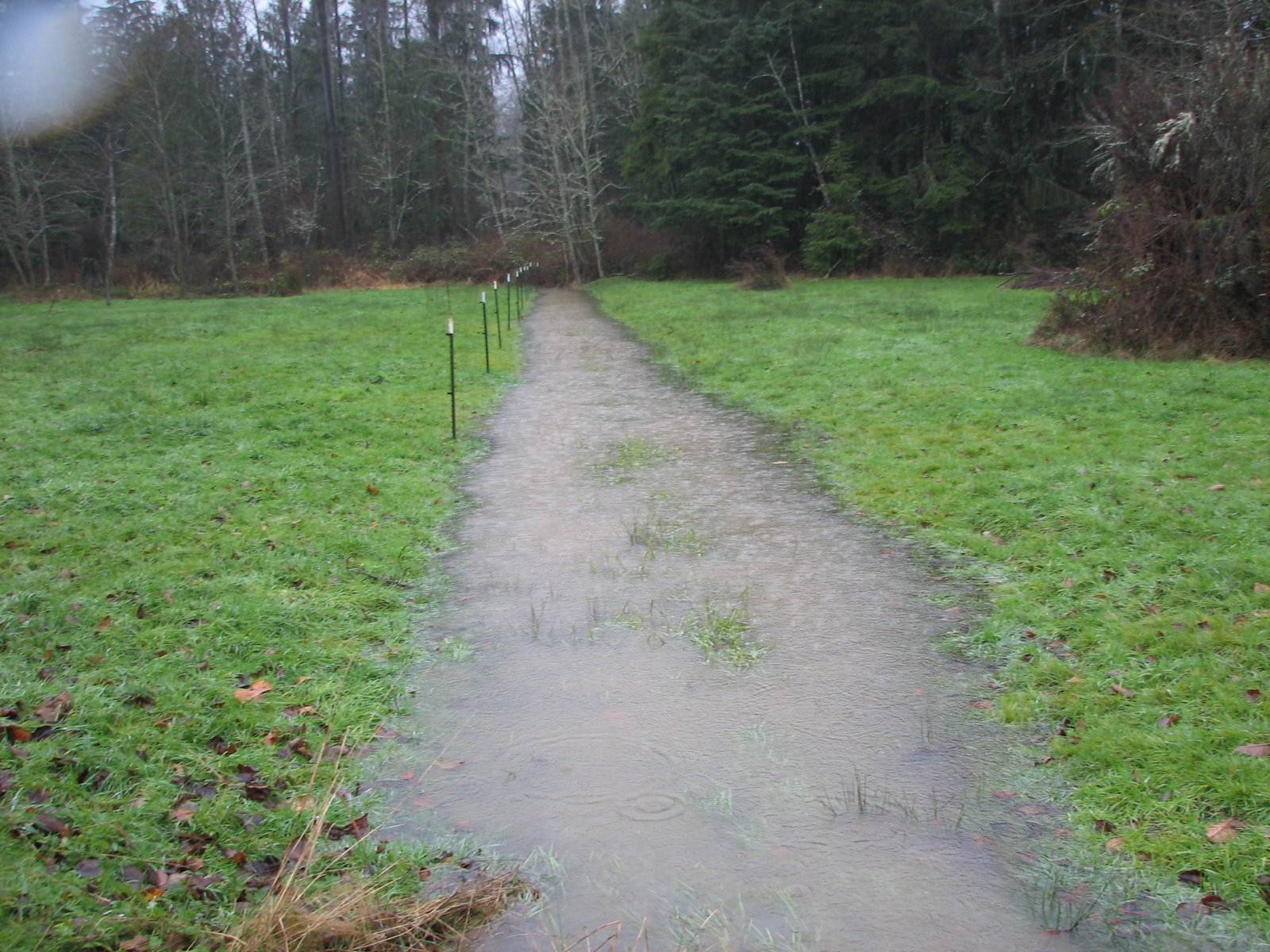 Water water everywhere... I was worried when I saw how much water was on the high side of our driveway. At first I thought the culvert under the driveway was clogged, but when I looked, it is pumping out pretty good on the other side.
