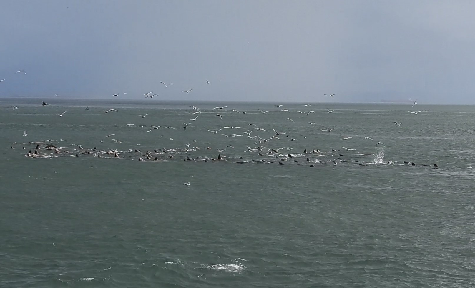 While we were there we saw a pod of seals. There seemed too many to count. In addition to the pod below, there were smaller groups scattered all across our view.